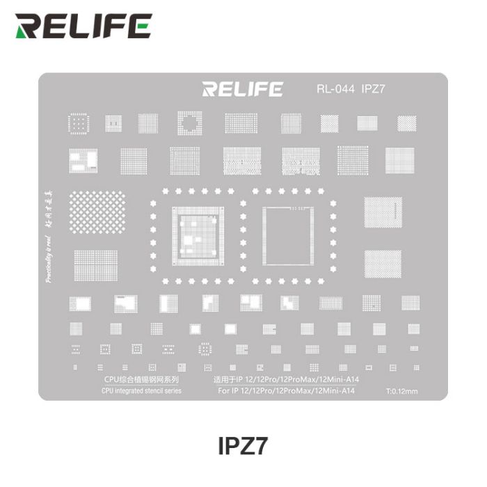 Description / RELIFE RL-044 IPZ7 IP12/12Pro/12ProMax/12Mini-A14 CPU Universal Plant Tin Steel Stencil/0.12MM